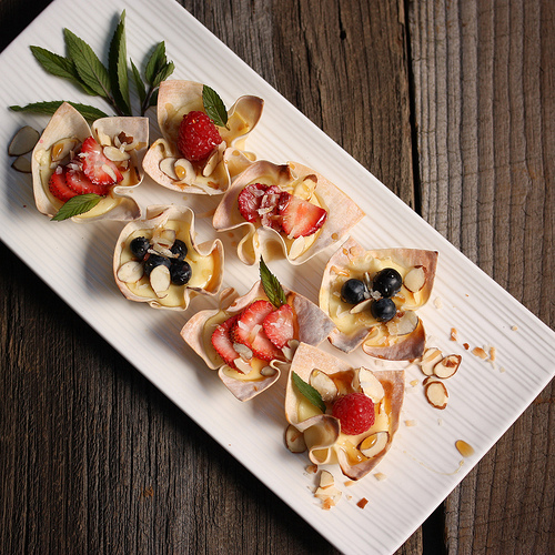 Here at Liz’s Healthy Table, I’m all about giving recipes a healthy “fix,” and for this one, I trimmed the fat and calories by switching to 1/3-less fat cream cheese, creating a light “crust” using wonton wrappers, and I made it mini to keep the portion size down. I topped my cheesecakes with nutrient-rich berries and almonds and boosted the flavor with one of my favorite ingredients: almond extract.