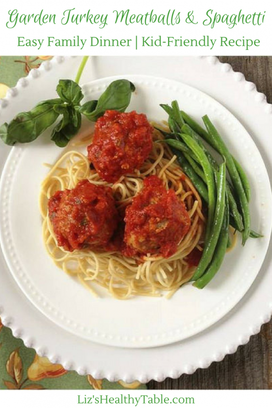 [Tweet “Dinner made easy with this recipe for Garden Turkey Meatballs with whole grain spaghetti. #pasta #dinner #turkey”]