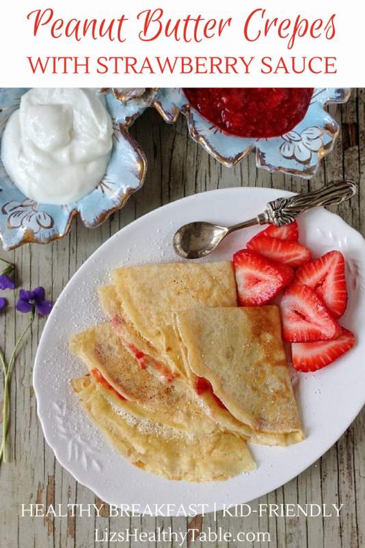 - To assemble, spread 2 teaspoons peanut butter on each warm crepe. Spread on about 1 tablespoon of the strawberry sauce. Fold the crepes in half and then in half again to create a triangle. Top or serve with Greek yogurt, the remaining strawberry sauce, and sliced berries and powdered sugar as desired.