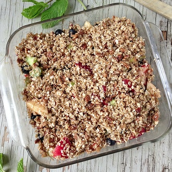 [Tweet “Apple, Rhubarb and Berry Crisp for a healthy fruit-based #dessert #oats #pecans”]