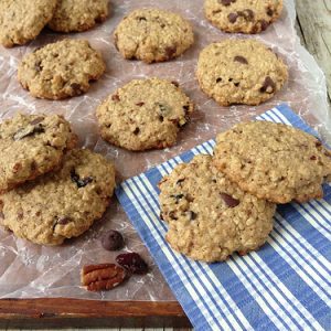 Traditional, butter-drenched chocolate chip cookies get a super-healthy makeover with these Cherry Chocolate Oatmeal Cookies. They’re made with dried tart cherries, oats, pecans, and other good-for-you ingredients and they pair up perfectly with a glass of low-fat milk!