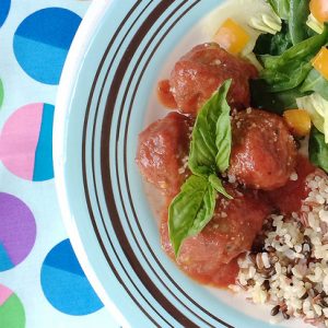 Serve my meatballs with rice for a gluten-free option; If gluten is not an issue with your family, serve on a sub roll or with your favorite pasta.