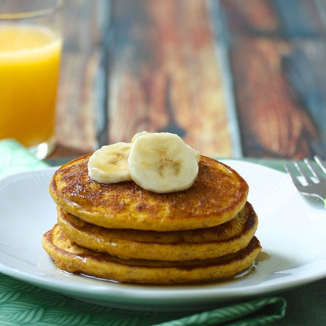 Start your family’s day with a stack of healthy pumpkin pancakes. My super-nutritious Pumpkin Maple Pancakes are made with whole wheat flour and ground flaxseed as well as milk, eggs, maple syrup, and canned 100% pure pumpkin, so each a serving has nearly a day’s worth of immune-boosting vitamin A.