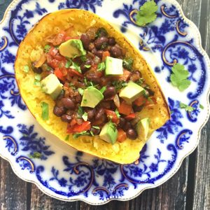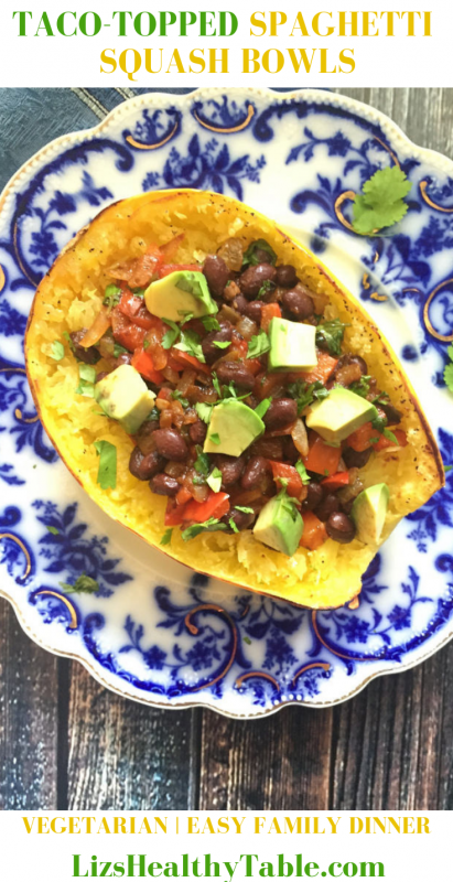[Tweet “Try this #vegetarian, #GF recipe for Taco-Topped Spaghetti Squash Bowls #MeatlessMonday”]