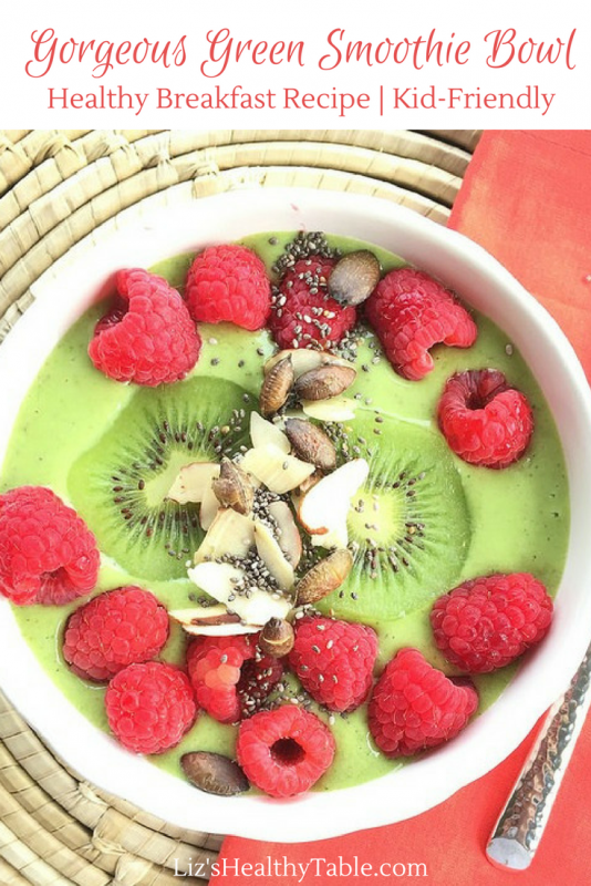 Energize your family’s day with this Gorgeous Green Smoothie Bowl. Made with kiwi, baby spinach (or kale), frozen banana, and other good-for-you-ingredients, you can serve this for breakfast or as an after-school snack.