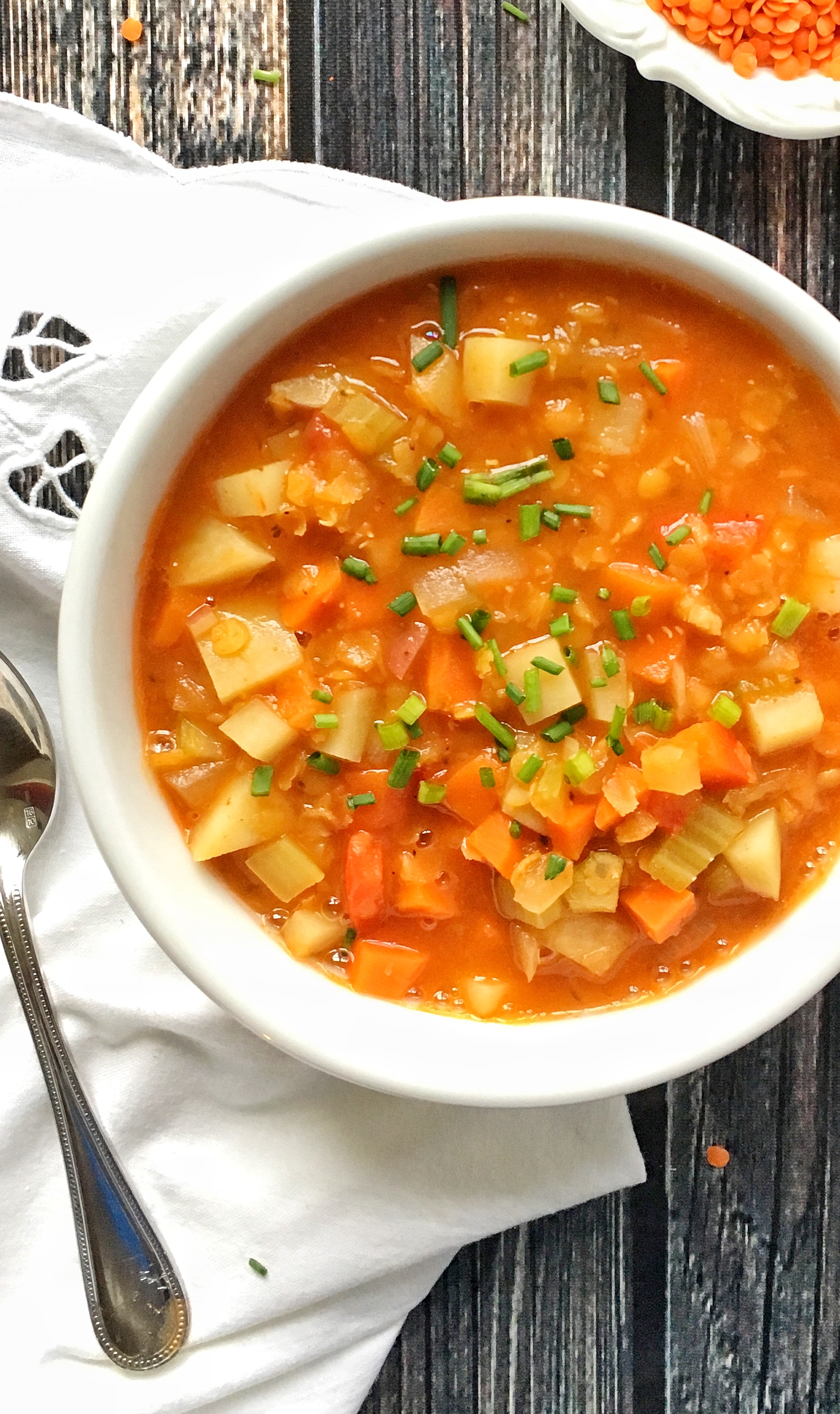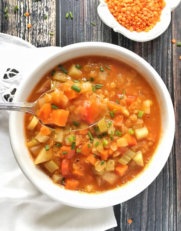 Red Lentil Soup via lizshealthytable.com #vegetarian #vegan
