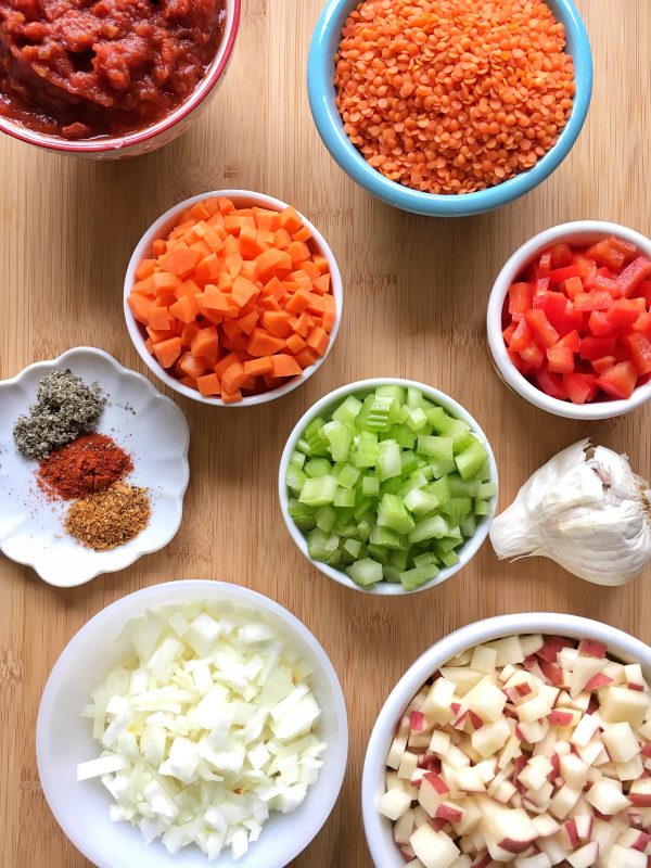 How many vegetables can you cram into one delicious, comforting soup? Well, in the case of this Red Lentil Soup with Root Vegetables and Sage, the answer is six: onion, bell pepper, carrots, celery, potatoes, and lentils, which are technically a vegetable.