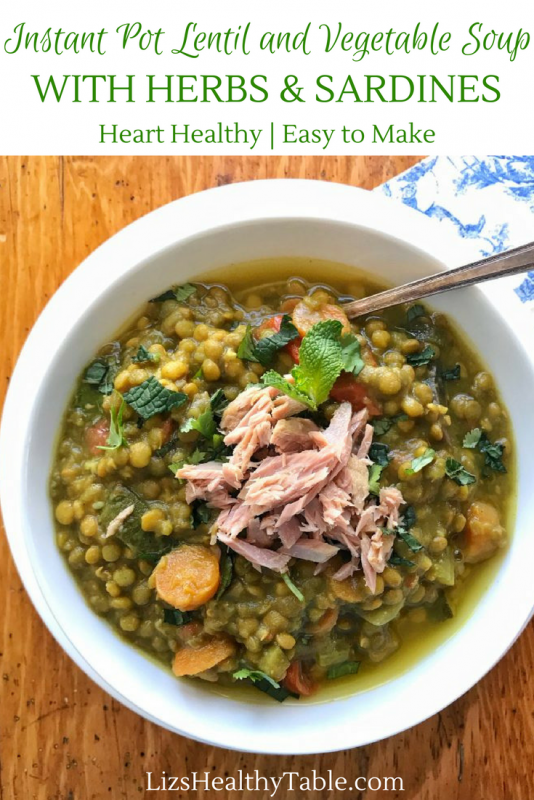 Instant Pot Lentil and Vegetable Soup with Herbs & Sardines