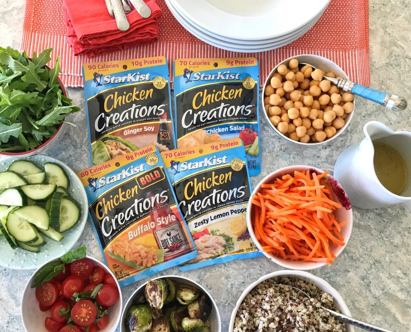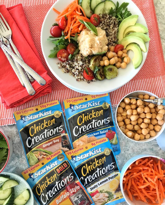 [Tweet “#ad NEW recipe for Build-Your-Own Chicken, Quinoa, and Vegetable Nourish Bowls with @StarKistCharlie new #StarKistChickenCreations – Choose from 4 flavors: Buffalo Style, Chicken Salad, Ginger Soy, and Zesty Lemon Pepper #TearEatGo #vegetables #quinoa #FNCE”]