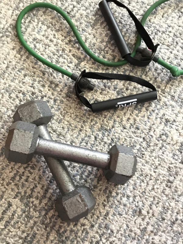 If you made a resolution to hit the gym every day, I commend you. But if you can’t stick with it, instead of getting mad at yourself, devise ways to add little bursts of movement to your day instead. Whether you work out for an hour straight every day or break it up into smaller nuggets of activity, you’ll still be doing your body and mind a favor. As I mentioned earlier in the post, I try my hardest to walk a few times a week and I always feel great when I make it to yoga, which I do about three times a week. But walking down the stairs to our basement where we have a small workout room, is my challenge. Heck, it’s only one flight down, but for some reason, I find all sorts of excuses NOT to go there! The thing that’s missing from my weekly exercise regime is weight-bearing exercise, and in our workout room, we have free weights that are begging to be used. Since it’s clear that working out downstairs is an obstacle, this year I’m trying something new, and I encourage all of you to do the same thing. This year, I’m bringing some of the exercise equipment up to the main floor of the house. Here’s the plan, and if you’re in the same boat I’m in, I hope you’ll do this too: