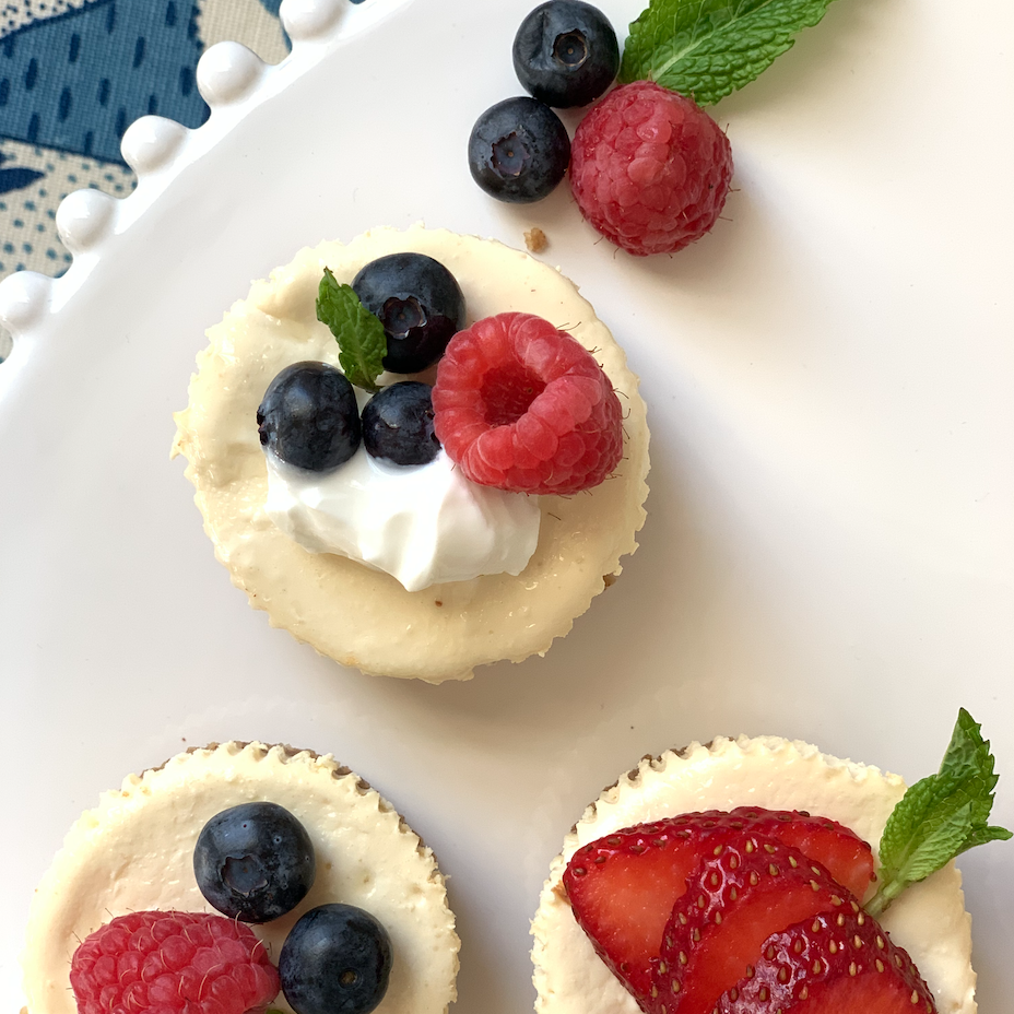 Cheesecake has a reputation for being really rich, and I’ve never been a big fan. But my slimmed-down mini cheesecake creations won me over for several reasons. For starters, the oat and walnut layer on the bottom is healthier than a traditional butter-laden crust.