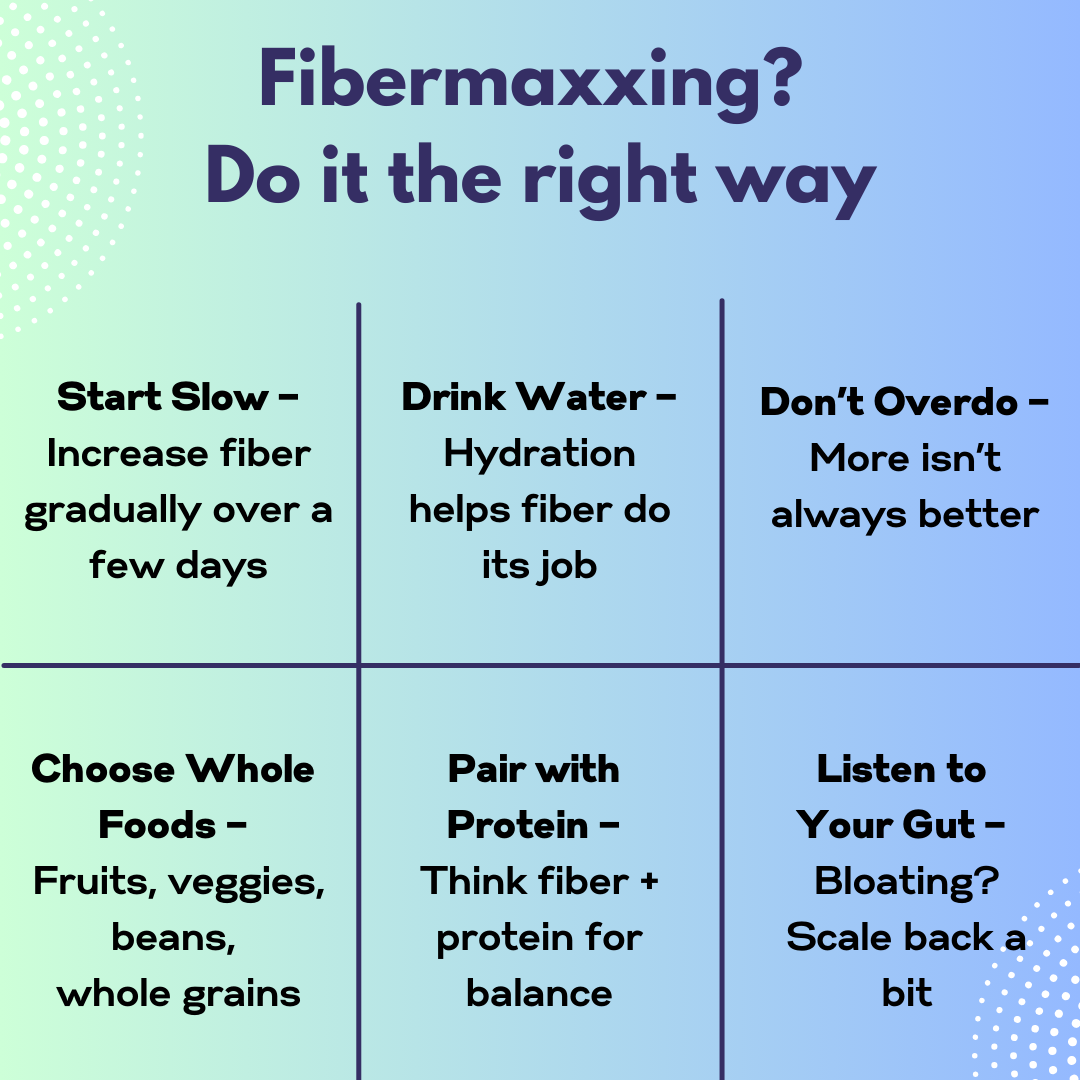 The fibermaxxing trend might be new, but the advice isn’t: eat more plants, build balanced meals, and go slow. Fiber is a powerhouse nutrient, but it works best as part of a diverse, whole-food diet—not in isolation.