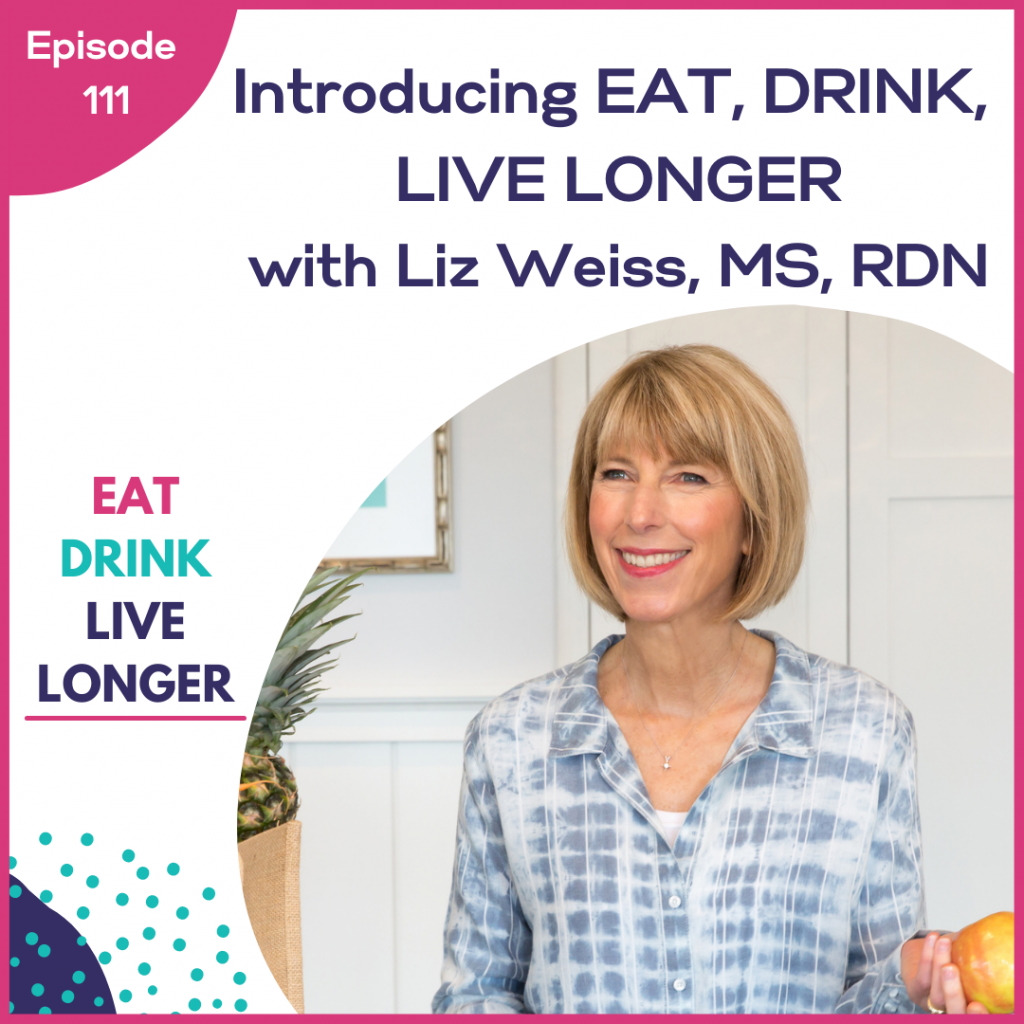 Podcast Episode 111: Introducing Eat, Drink, Live Longer with Liz Weiss, MS, RDN Podcast | January 4, 2022 Podcast Episode 111: Introducing Eat, Drink, Live Longer with Liz Weiss, MS, RDN